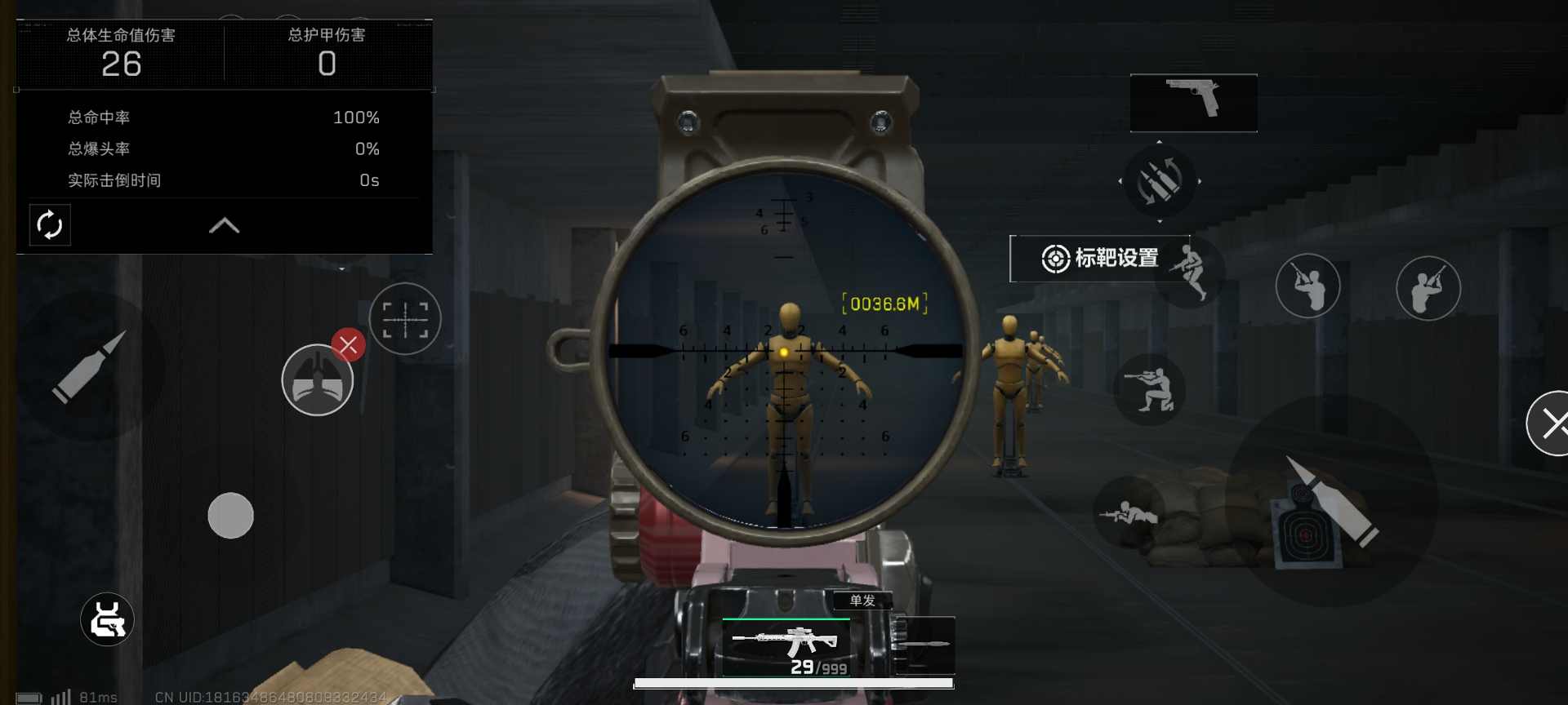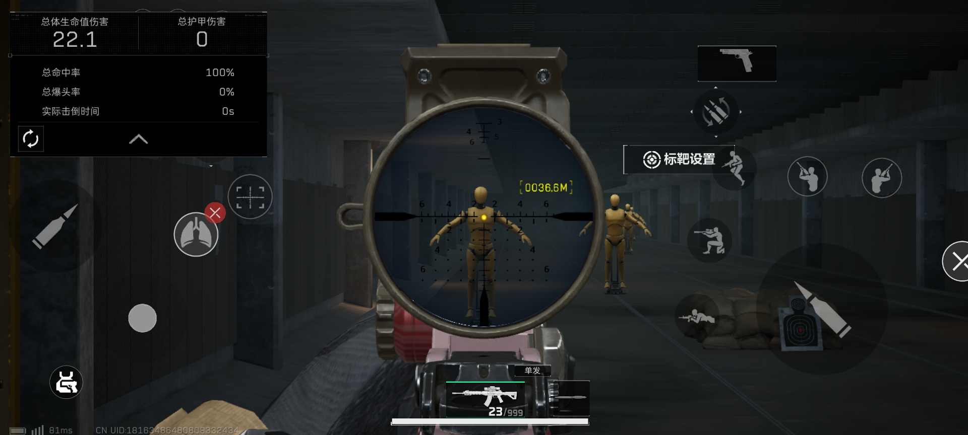 然后枪械数据界面里,射程一会34一会39,不测试根本看不出问题。正常上版本腾龙小导气就有bug,轻语+长枪管+小导气+精校射程能到47,事实也确实能到47,爆杀其他枪,优势射程能高出AK和m4两个身位。不加轻语,装长枪管+小导气+精校也能射程事实达到44,至少能高出那二位一个身位,所以强。